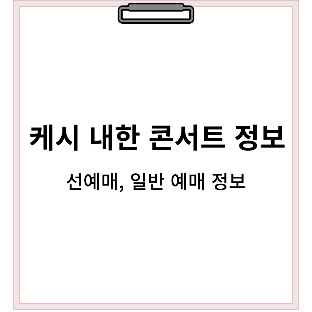 2025년 3월 1일 오후 7시에 케시 내한 콘서트가 열립니다. 선예매는 11월 11일 낮 12시부터 오후 2시 59분까지 진행되는데요. 아티스트 선예매는 아티스트 주관으로 진행되며 관련 정보는 아티스트 공식 홈페이지, 소셜미디어, 팬 커뮤니티 등을 확인하여 예매가 가능합니다. 일반 예매는 인터파크에서 진행되는데요. 11월 12일 낮 12시에 진행됩니다. 아티스트 공식 홈페이지를 확인하니 이메일을 구독하면 선예매 링크를 받을 수 있는 것 같습니다. 예매는 무통장입금이 불가하고 1인 4매까지 예매 가능합니다.