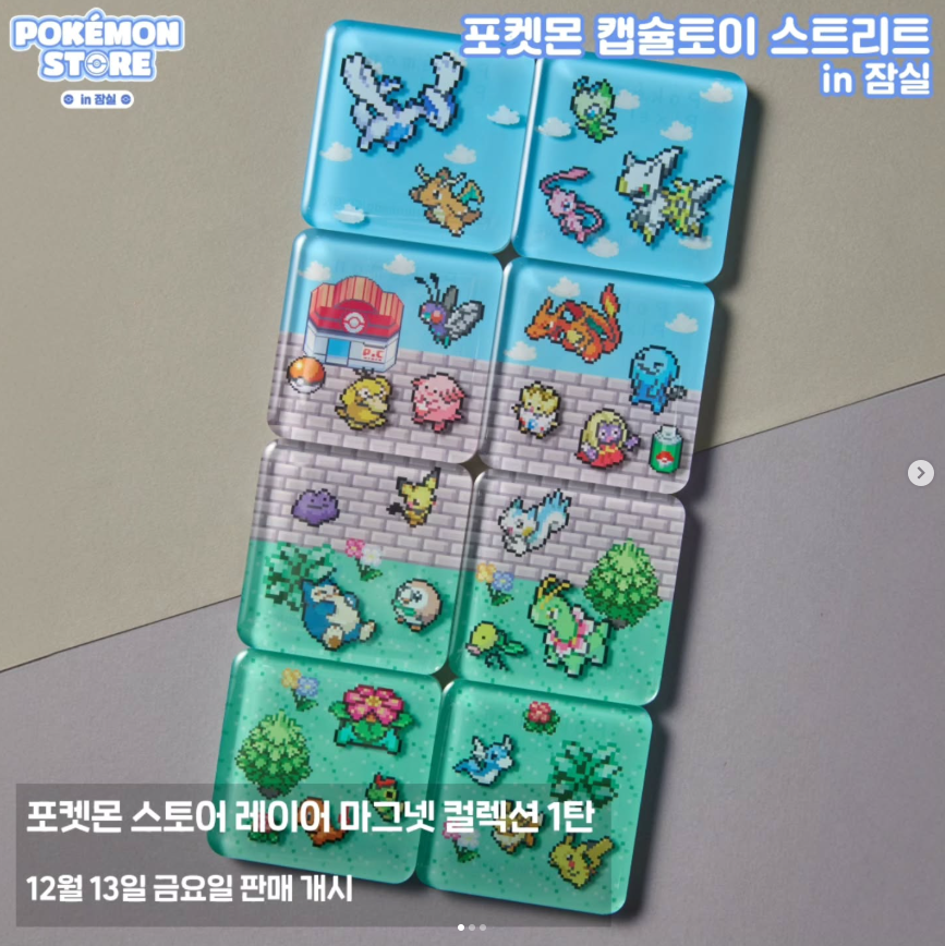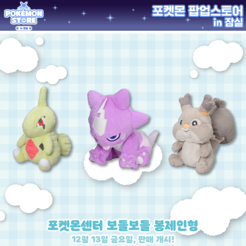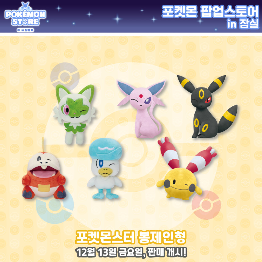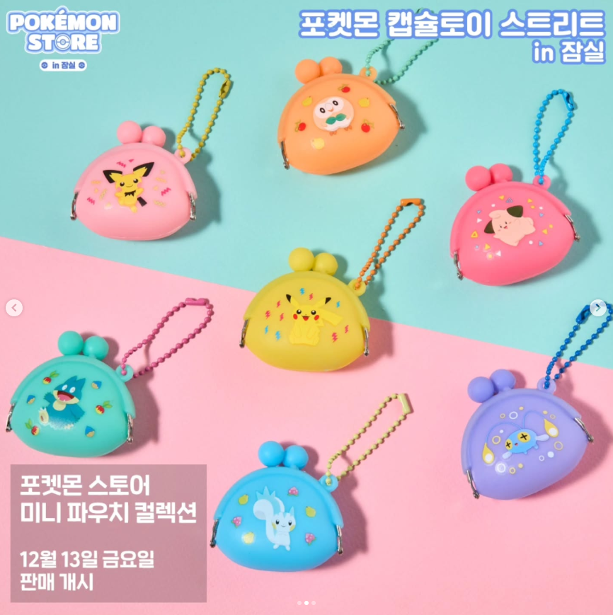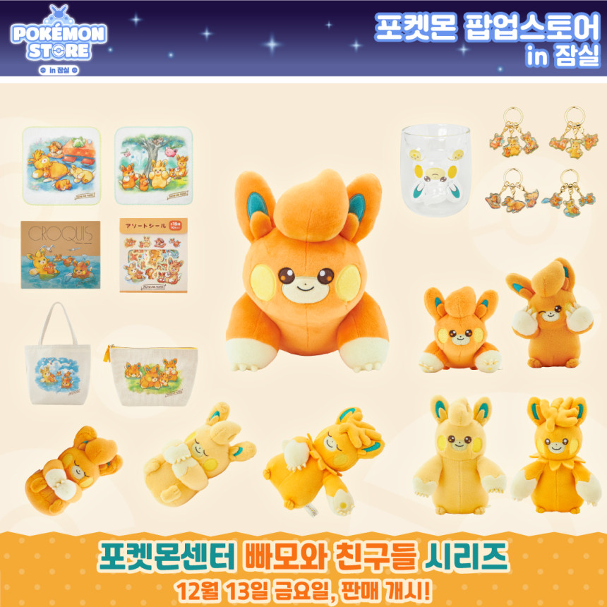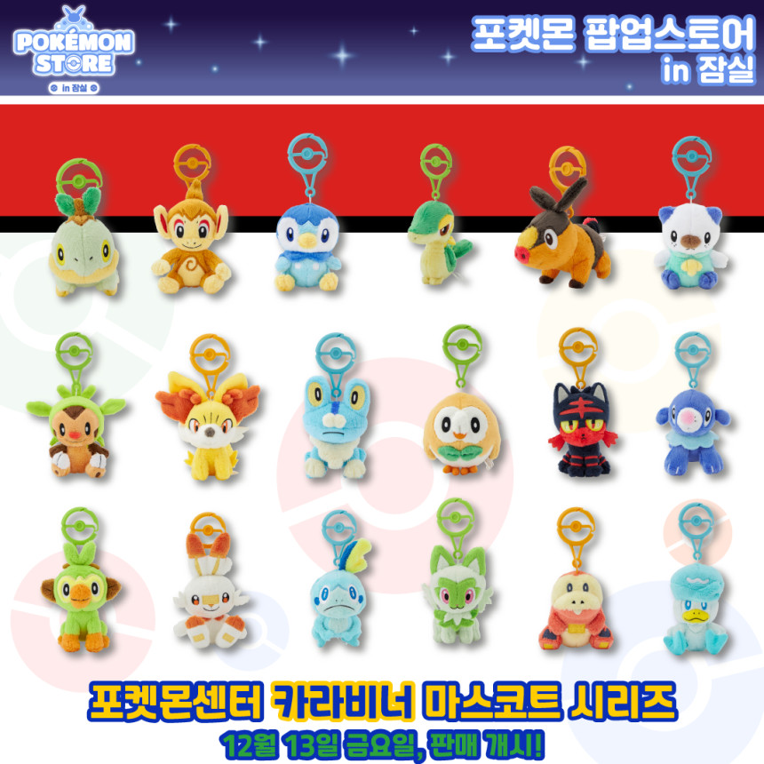 포켓몬 스토어 오뚝이 피규어 컬렉션, 포켓몬 스토어 미니 파우치 컬렉션, 포켓몬 스토어 럭키 키링 컬렉션, 포켓몬 스토어 미니 토트백 파우치 컬렉션, 포켓몬 스토어 레이어 마그넷 컬렉션, 포켓몬 스토어 흔들흔들 아크릴 키링 컬렉션, 포켓몬 스토어 증명사진 스티커 컬렉션, 포켓몬 스토어 미니 앨범 컬렉션, 포켓몬센터 DOLLS 봉제인형, 포켓몬센터 보들보들 봉제인형, 포켓몬센터 빠모와 친구들 시리즈, 포켓몬센터 쫀득쫀득 봉제인형, 포켓몬센터 카라비너 마스코트 시리즈, 빙글빙글 포켓몬 크레페 피카츄 & 팽도리, 포켓몬스터 봉제인형